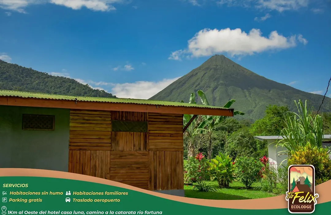 Die Tio Felix Eco Lodge La Fortuna bietet eine Terrasse mit Blick auf die Berge und liegt nur 5 Minuten Fußweg von der Wood & Art Gallery entfernt.